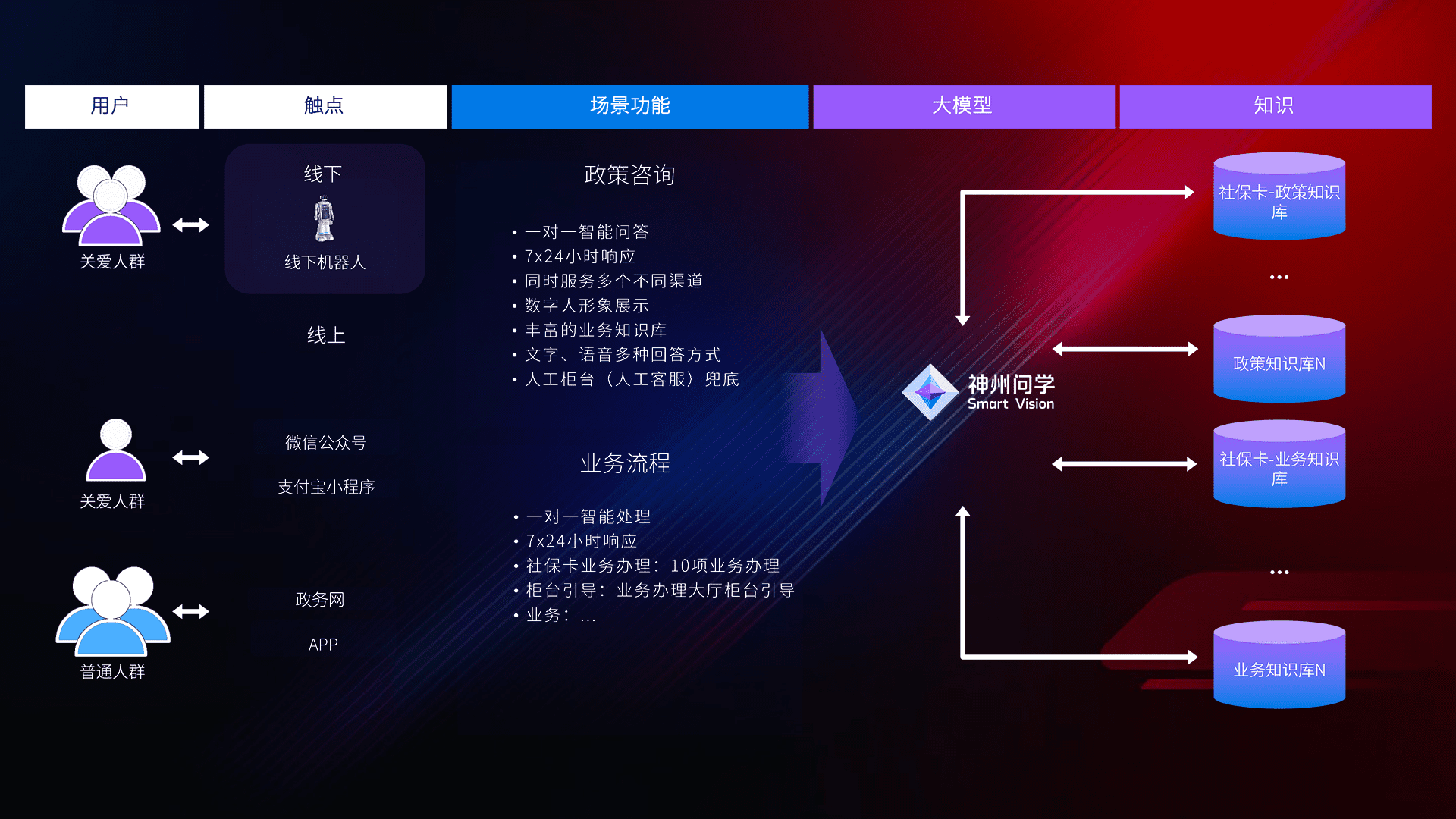 • 线上线下全覆盖:线上提供微信公众号、、支付宝小程序、、、、政务网、、、、app多种渠道,,与线下机器人形成完整服务体系。。